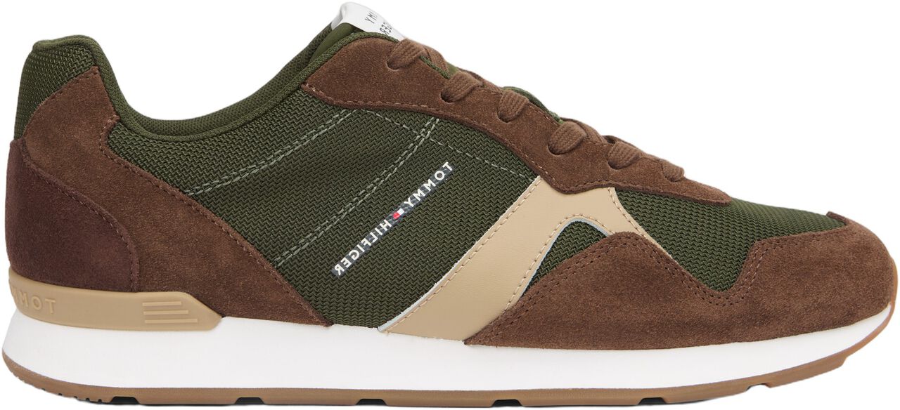 Disse grønne sneakers fra Tommy Hilfiger er et godt eksempel på, hvordan man får meget stil for pengene. Farvekombinationen i mørkegrøn, brun ruskind og beige detaljer giver et klassisk, næsten preppy udtryk, som fungerer perfekt til både jeans, chinos og sommerbukser.
