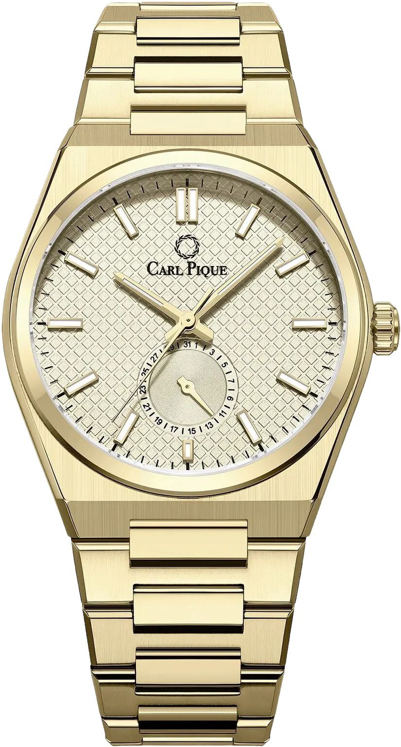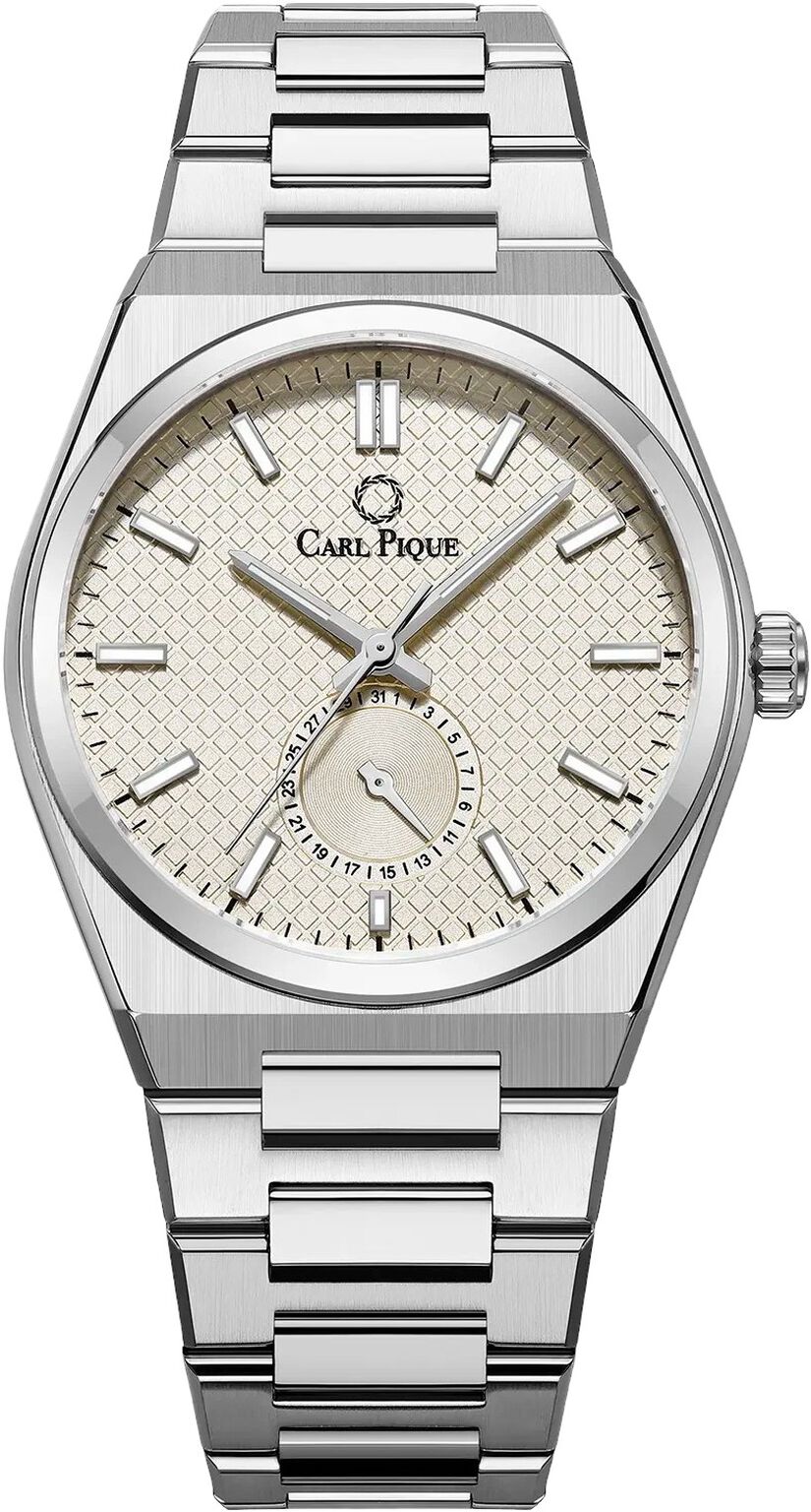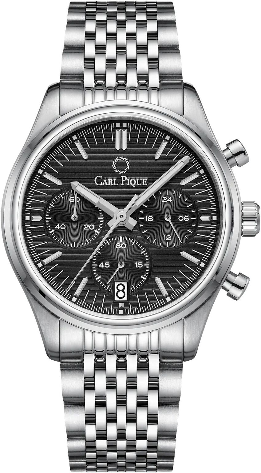 38 mm, safirglas, 10 ATM vandtæthed, lumen og Epson urværk. Det er ægte value for money – også selvom navnet “Carl Pique” måske mest af alt lyder som en fransk falskspiller i en Netflix-serie.