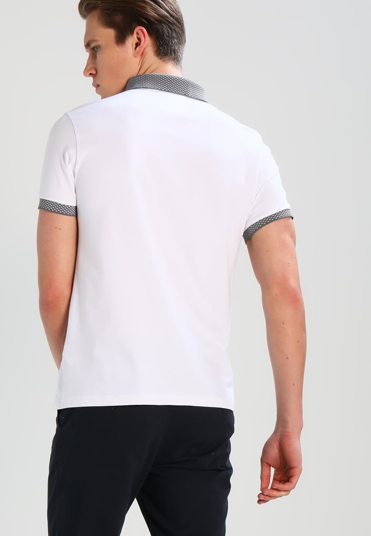 En hvid stilren polo med en smule kontrast på ærme og ved kraven.