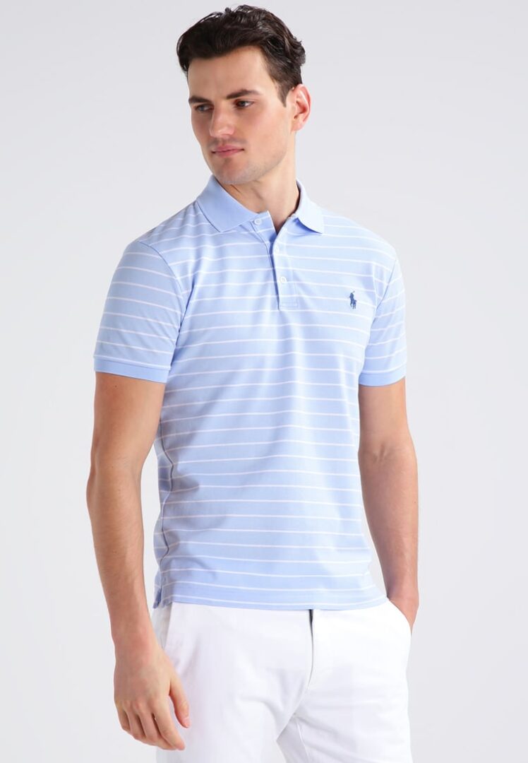 Lyseblå polo med hvide striber