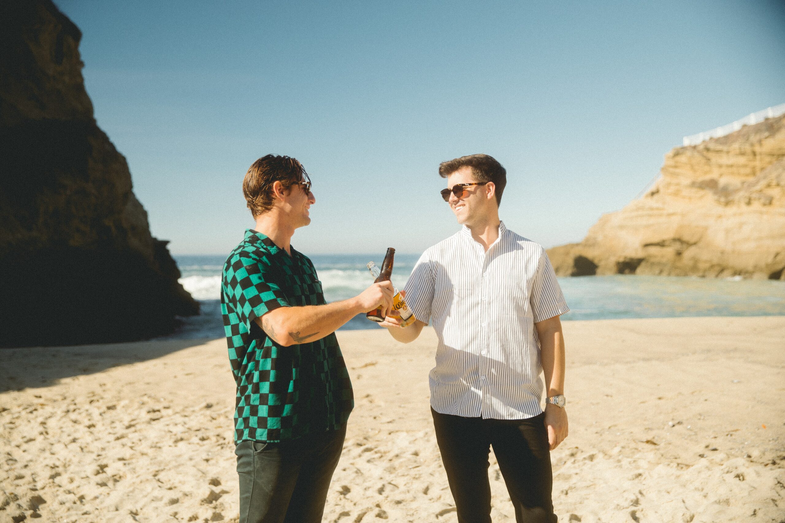 Dit første par: klassiske sorte eller brune solbriller i wayfarer- eller aviatorform. De fungerer med alt og passer til alle ansigtsformer. Dit andet par: noget med personlighed. Runde glas, farvede stel eller et par Persol med karakter. Og dit tredje: et par billige backup-solbriller du kan tage med på stranden uden at græde, hvis de ryger i sandet.